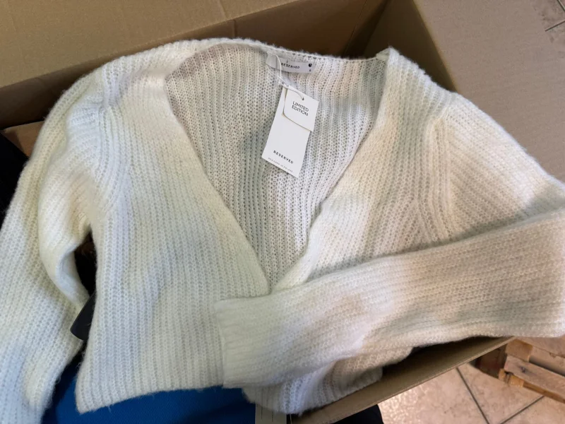 W pakiecie odzież; kurtki, swetry, płaszcze, kamizelki. Przeważająca ilość produktów damskich oraz około 30% męskich i dziecięcych.